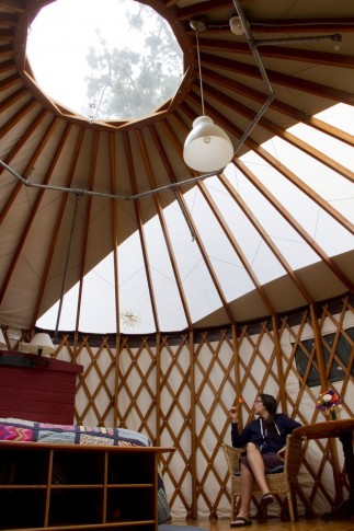 Inside the Yurt: In addition to amenities, beautiful inhabitants, skylights and wonders of geometry there is also an oculus in the ceiling. Upon leaving you will henceforth stare at the ceiling above your own bed and think longingly… ahhh..oculus.
